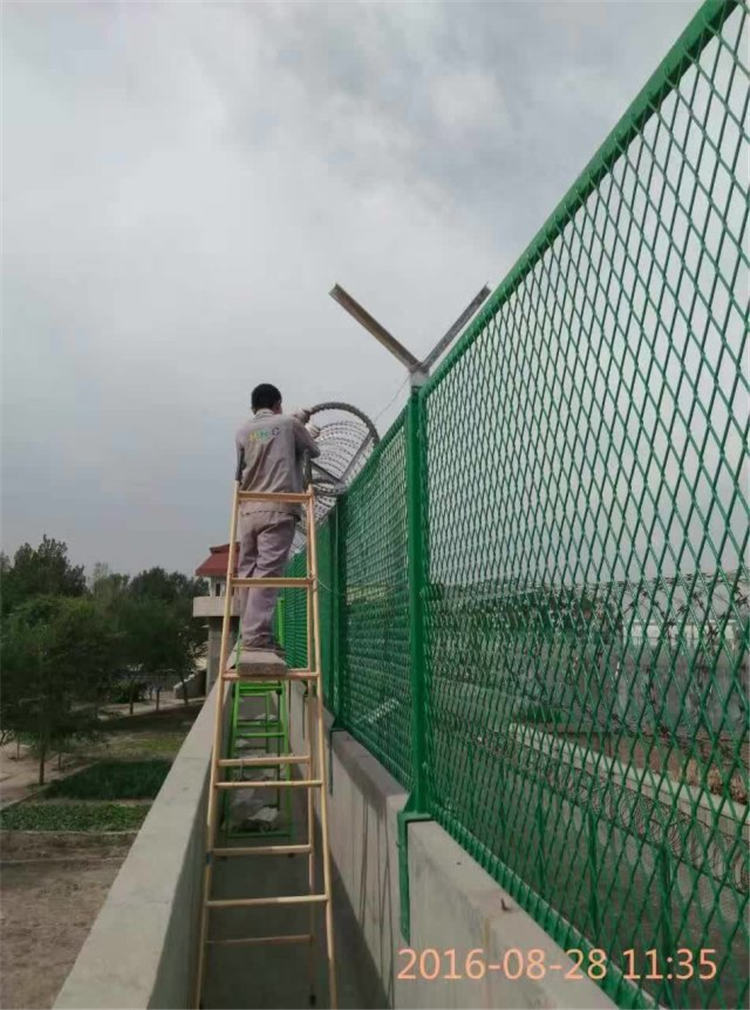 監(jiān)獄護欄網(wǎng)也被稱為“ Y形安全防御護欄網(wǎng)”。它由V形支架柱、加固的焊接薄板網(wǎng)、安全的防盜連接器和熱浸鍍鋅的刀片籠組成,具有很高的強度和安全防御能力。監(jiān)獄護欄網(wǎng)采用電鍍、熱浸鍍、噴塑、浸塑等防腐形式,具有良好的抗老化、耐日曬和耐候性。其產(chǎn)品外形美觀、花色多樣,不僅起到防護的作用,還可以美化。由于其高安全性和良好的抗攀爬能力,網(wǎng)片連接方法采用特殊的SBS緊固件來有效防止人為破壞性拆卸,四個水平彎曲加勁肋可提高網(wǎng)格表面的強度。