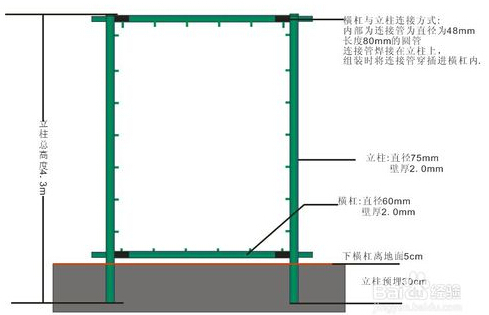二、接下來(lái)就是套管了,立柱的上部和下部?jī)啥撕附映?75px左右的套管,用來(lái)插接橫管。插接上橫管后體育場(chǎng)圍網(wǎng)的框架就形成了。